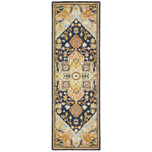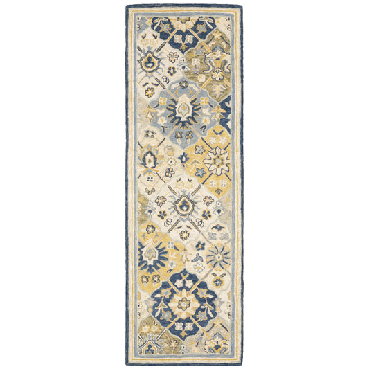 Alfresco 28406 Blue/ Gold Floral Trefoil Rug