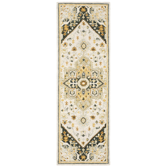 Alfresco 28407 Ivory/ Charcoal Medallion Oriental Rug