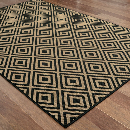 Marina 2335K Black/ Tan Lattice Outdoor Rug