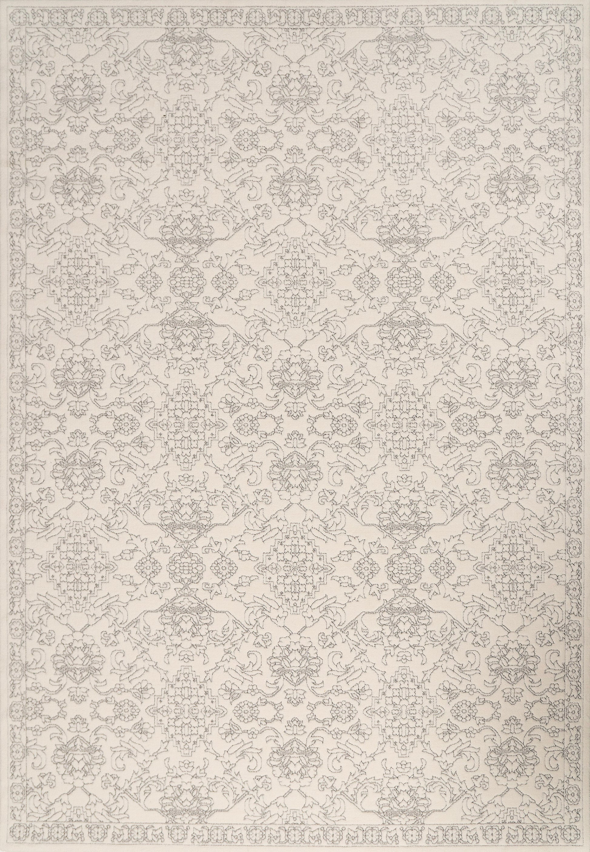 Boutique Traditional Grey/Cream Floral Low Pile Rug